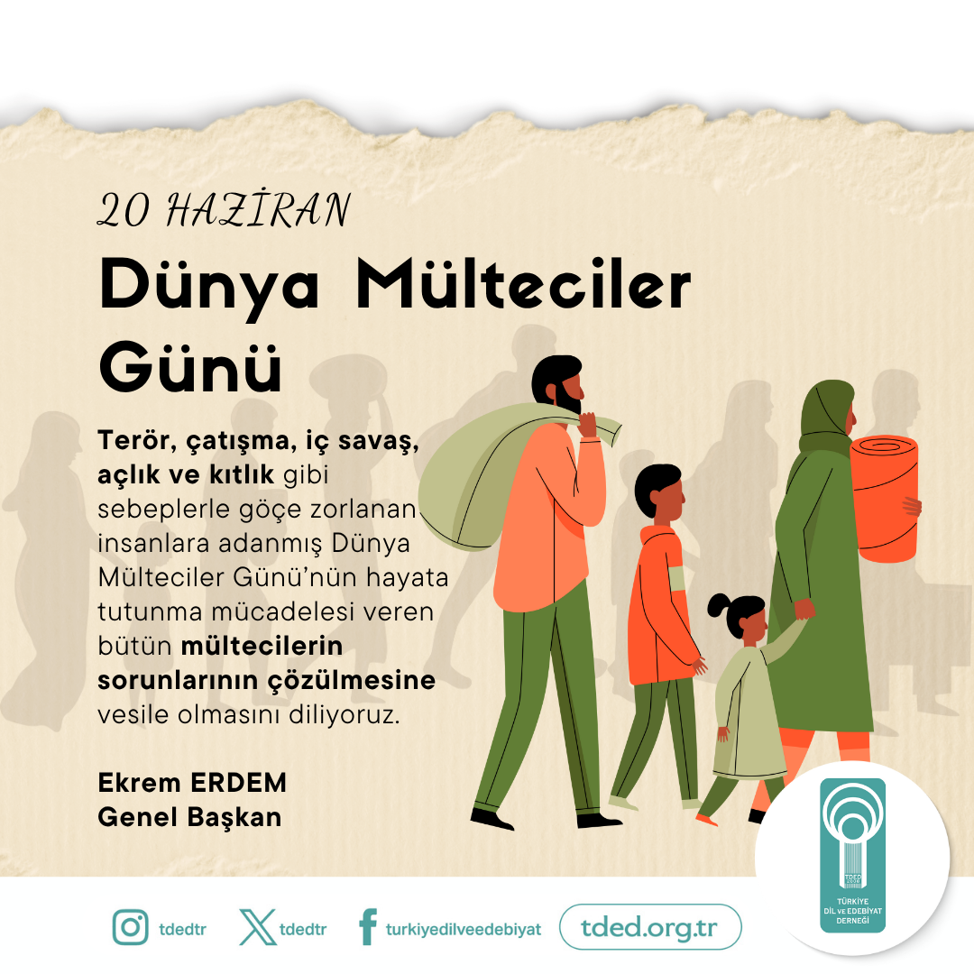 Terör, çatışma, iç savaş, açlık ve kıtlık gibi sebeplerle göçe zorlanan insanlara adanmış Dünya Mülteciler Günü’nün hayata tutunma mücadelesi veren bütün mültecilerin sorunlarının çözülmesine vesile olmasını diliyoruz.