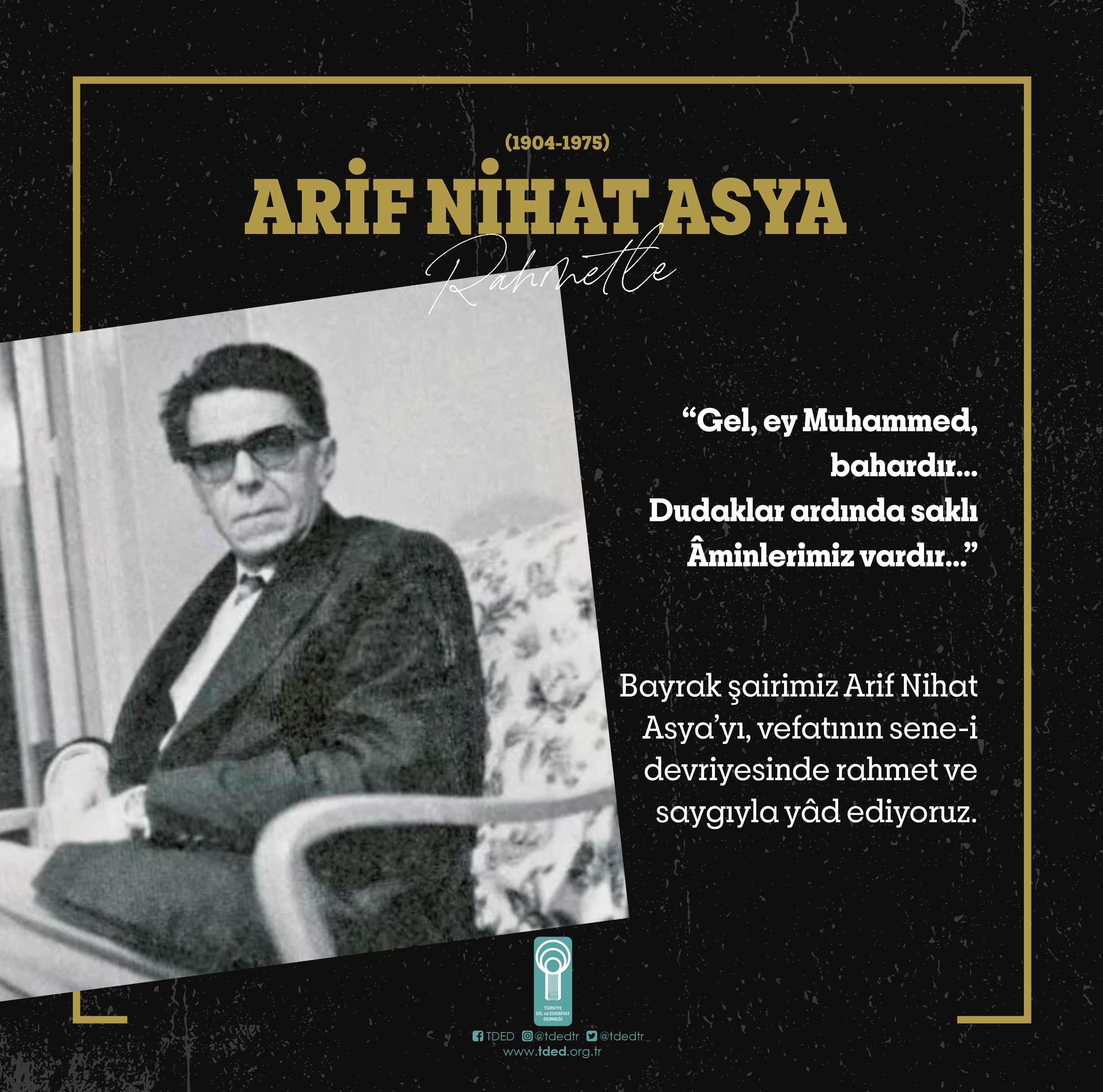 Bayrak şairimiz Arif Nihat Asya’yı, vefatının sene-i devriyesinde rahmet ve saygıyla yâd ediyoruz.