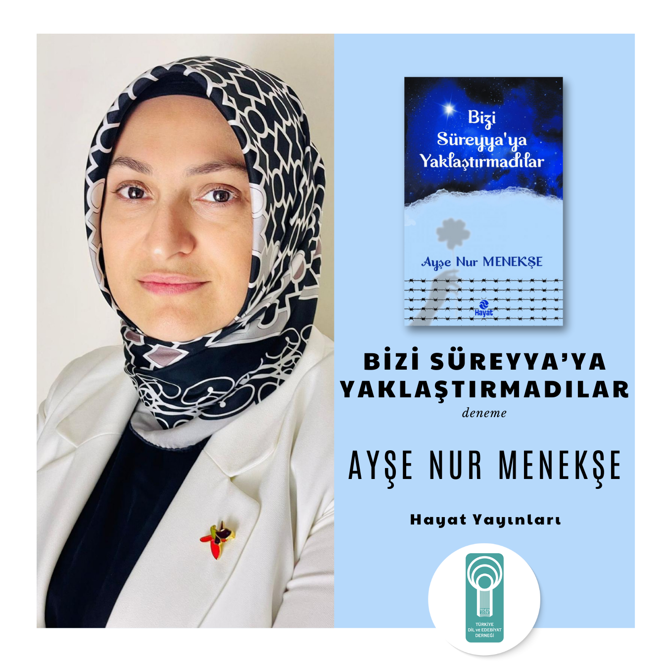 09/01/2026Türkiye Dil ve Edebiyat Derneği (TDED) Yönetim Kurulu Üyesi, şair yazar Ayşe Nur Menekşe’nin “Bizi Süreyya’ya Yaklaştırmadılar” isimli deneme kitabı Hayat Yayınları arasından çıktı.