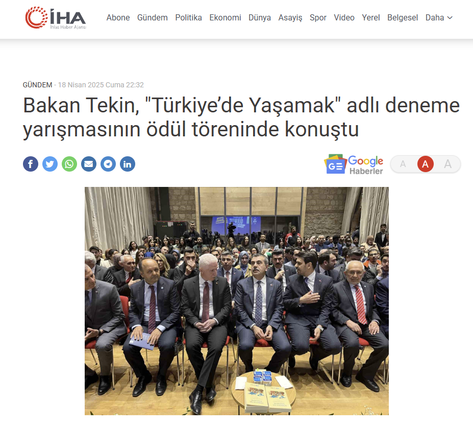 - https://www.haber1.com/guncel/bakan-tekin-uluslararasi-ogrenciler-icin-duzenlenen-deneme-yarismasinin-odul-toreninde-konustu/