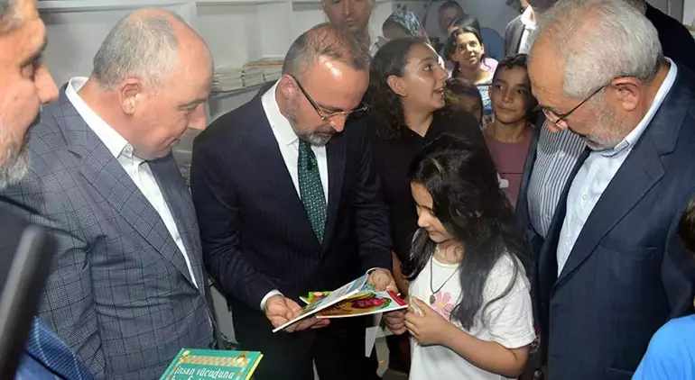 Törenin açılış konuşmasını yapan Ekrem Erdem, kitabın en iyi dost olduğunu belirterek herkese kitap okumayı tavsiye etti. İçişleri Bakan Yardımcısı Bülent Turan da kitap ve kütüphanenin kıymetli olduğunu belirtti. 6 Şubat’ta yaşanan afet sonrasında sadece afetin yaşandığı şehirlerde değil, tüm Türkiye’de insanları kitapla buluşturmanın ayrı bir keyif ve ayrı bir onur olduğunu ifade eden Turan, şunları söyledi:
