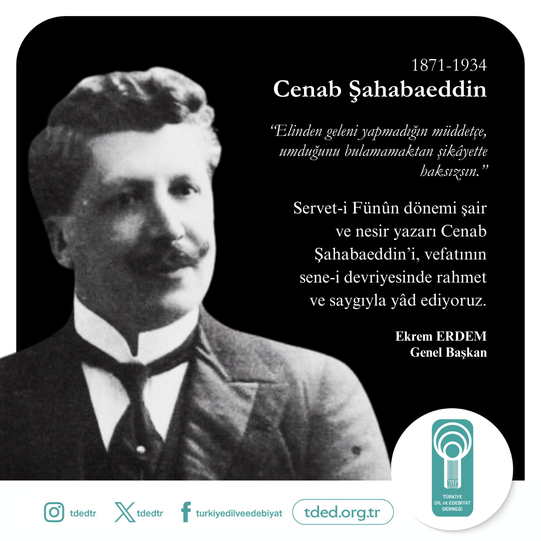 Servet-i Fünûn dönemi şair ve nesir yazarı Cenab Şahabaeddin’i, vefatının sene-i devriyesinde rahmet ve saygıyla yâd ediyoruz.