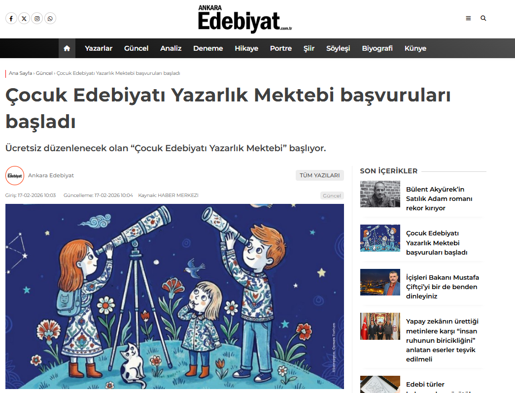 17/02/2026ÇOCUK EDEBİYATI YAZARLIK MEKTEBİ BAŞVURULARI BAŞLADI