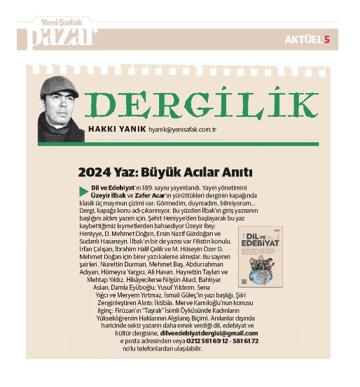 HAKKI YANIK / YENİ ŞAFAK PAZAR EKİ