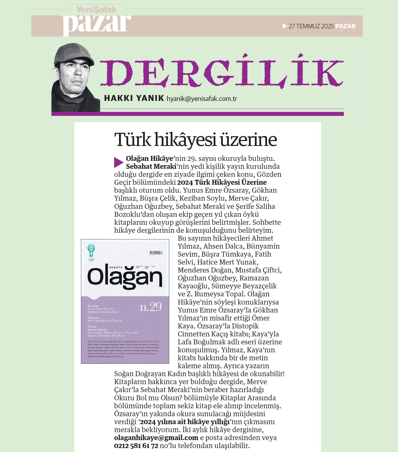 27/07/2025Yeni Şafak Pazar: Hakkı Yanık