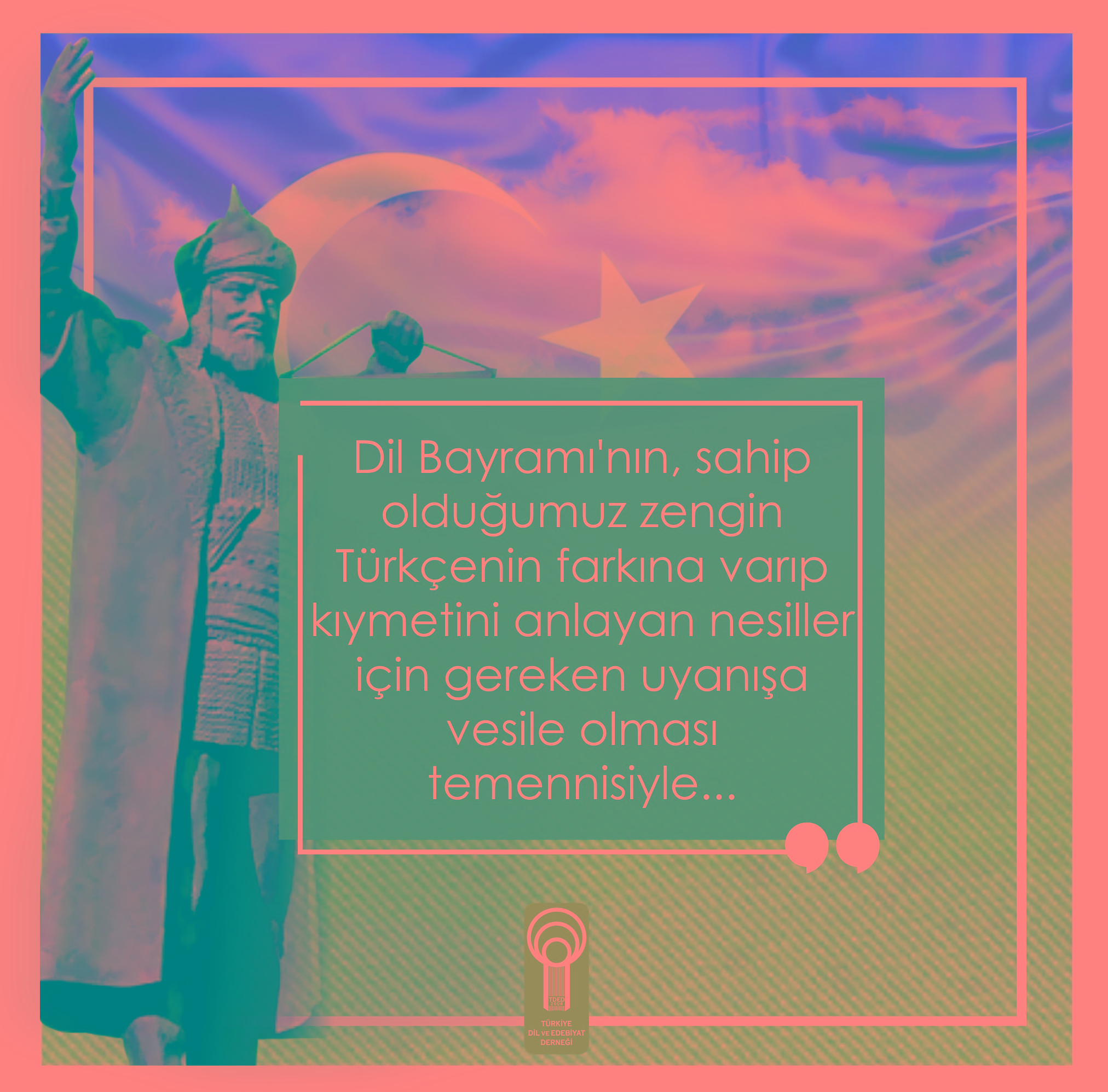 “Dil birliğini sağlayamamış bir topluluğun millet kimliği kazanması imkânsızdır. Millet olmak, bir dile sahip olmakla mümkündür. Millî varlıklarımızı ve değerlerimizi ancak kendi dilimizle muhafaza edebiliriz. Duygu düşüncede ortak akım dil ile sağlanabilir. İnsanların birbirine bağlanmasını ve bir olmasını sağlayan en büyük güç dildir. Dil Bayramı’nın sahip olduğumuz zengin Türkçenin farkına varan ve kıymetini anlayan nesillerin yetişmesi için gereken uyanışa vesile olmasını diliyorum.”