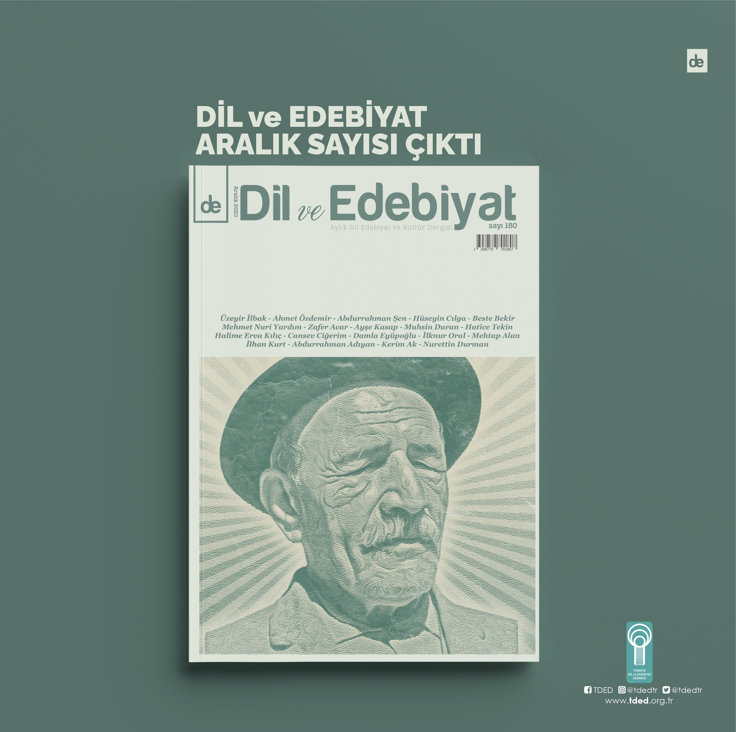 05/12/2023Türkiye Dil ve Edebiyat Derneği'nin (TDED) aylık dergisi Dil ve Edebiyat'ın 180. sayısı (Aralık 2023) “Âşık Veysel Dosyası”yla çıktı.