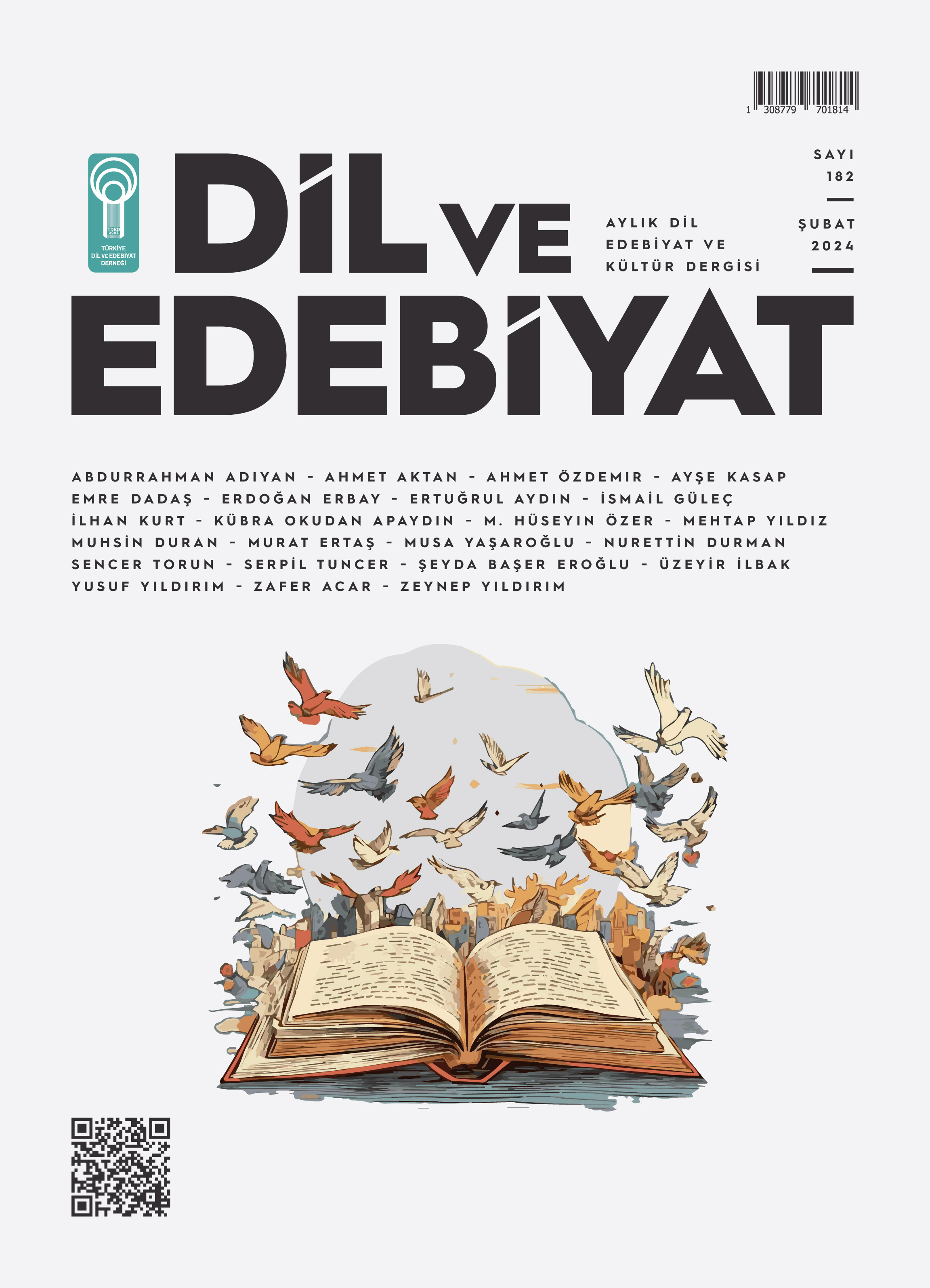 05/02/2024Türkiye Dil ve Edebiyat Derneği'nin (TDED) aylık dergisi Dil ve Edebiyat'ın 182. sayısı (Şubat 2024) özgün şiir, hikâye, deneme, makale ve inceleme metinleriyle yine dopdolu.
