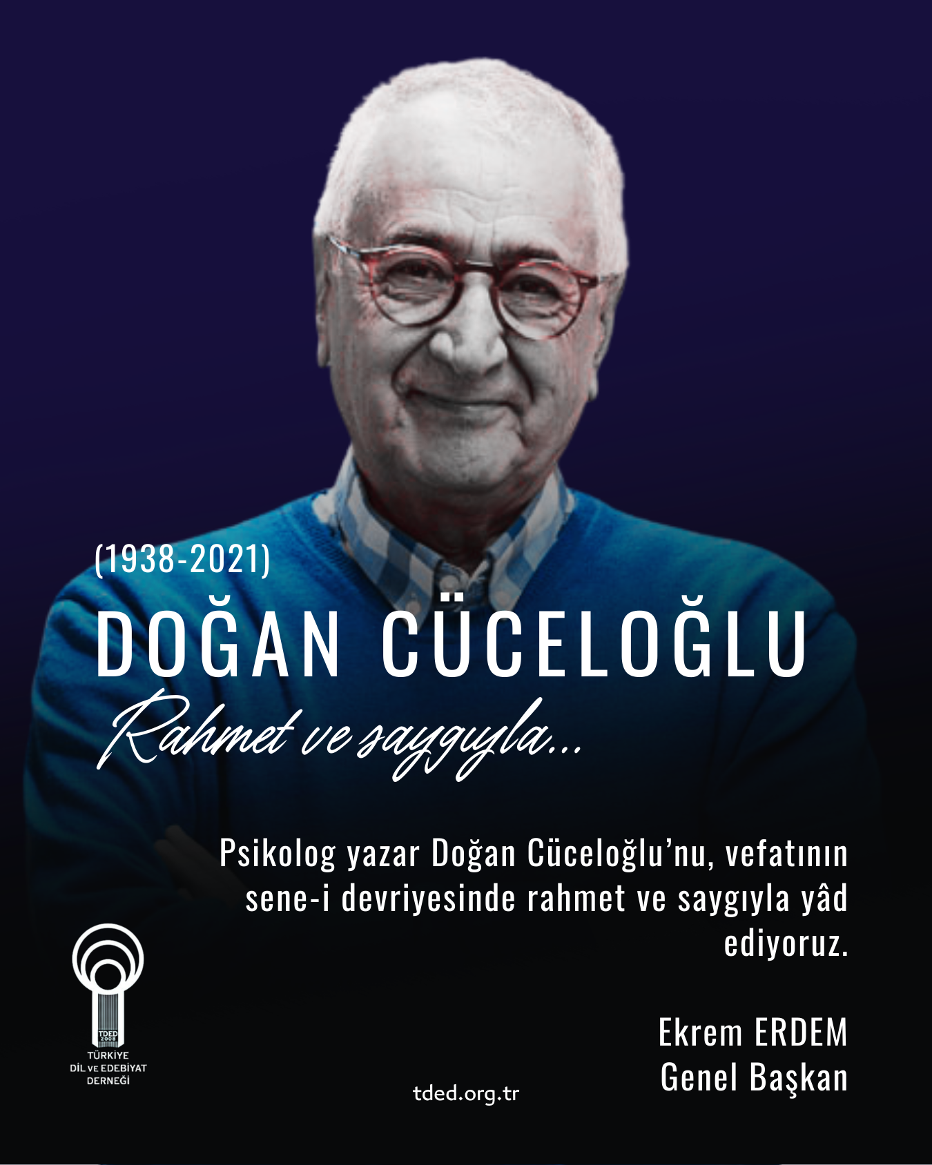 Psikolog yazar Doğan Cüceloğlu’nu, vefatının sene-i devriyesinde rahmet ve saygıyla yâd ediyoruz.