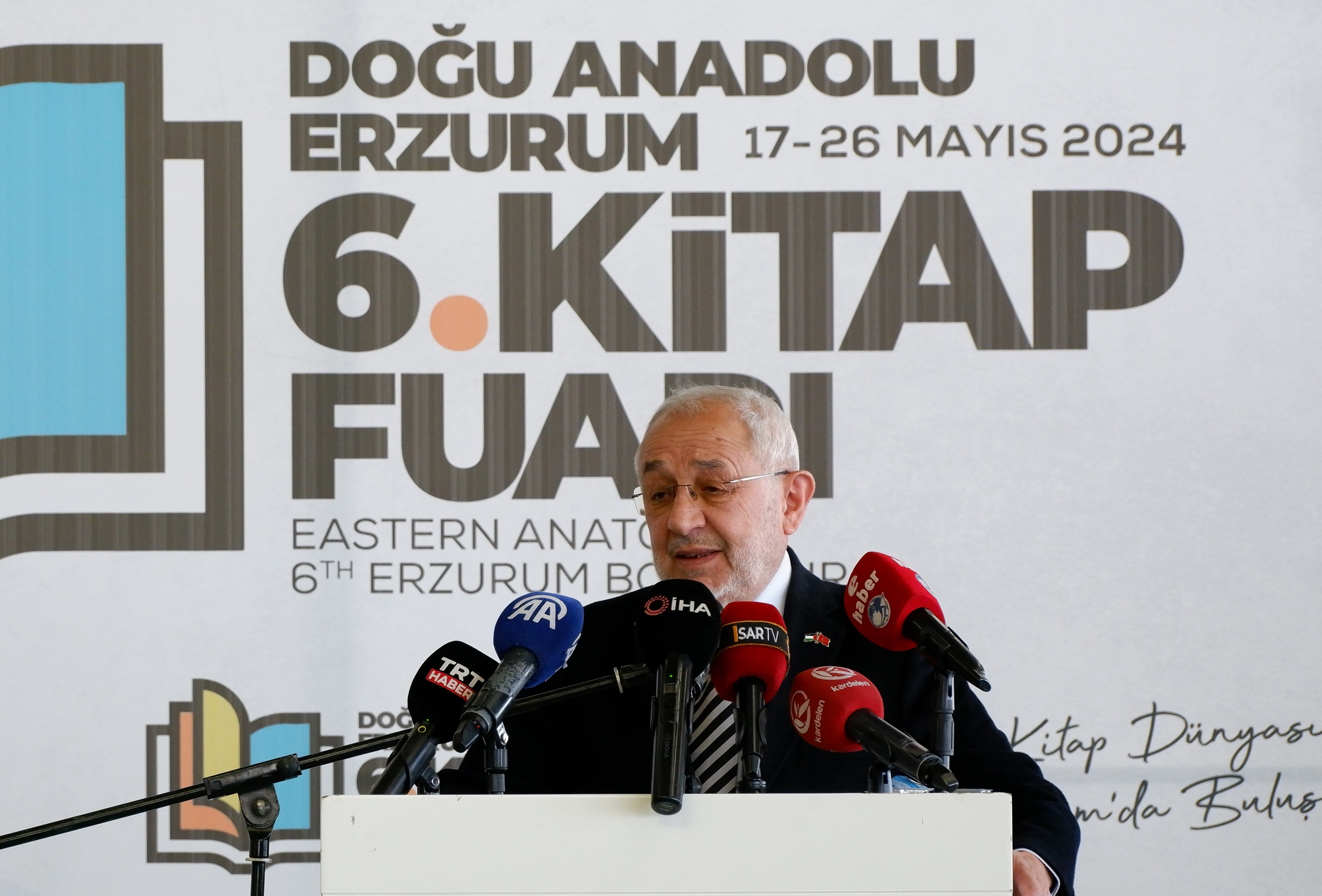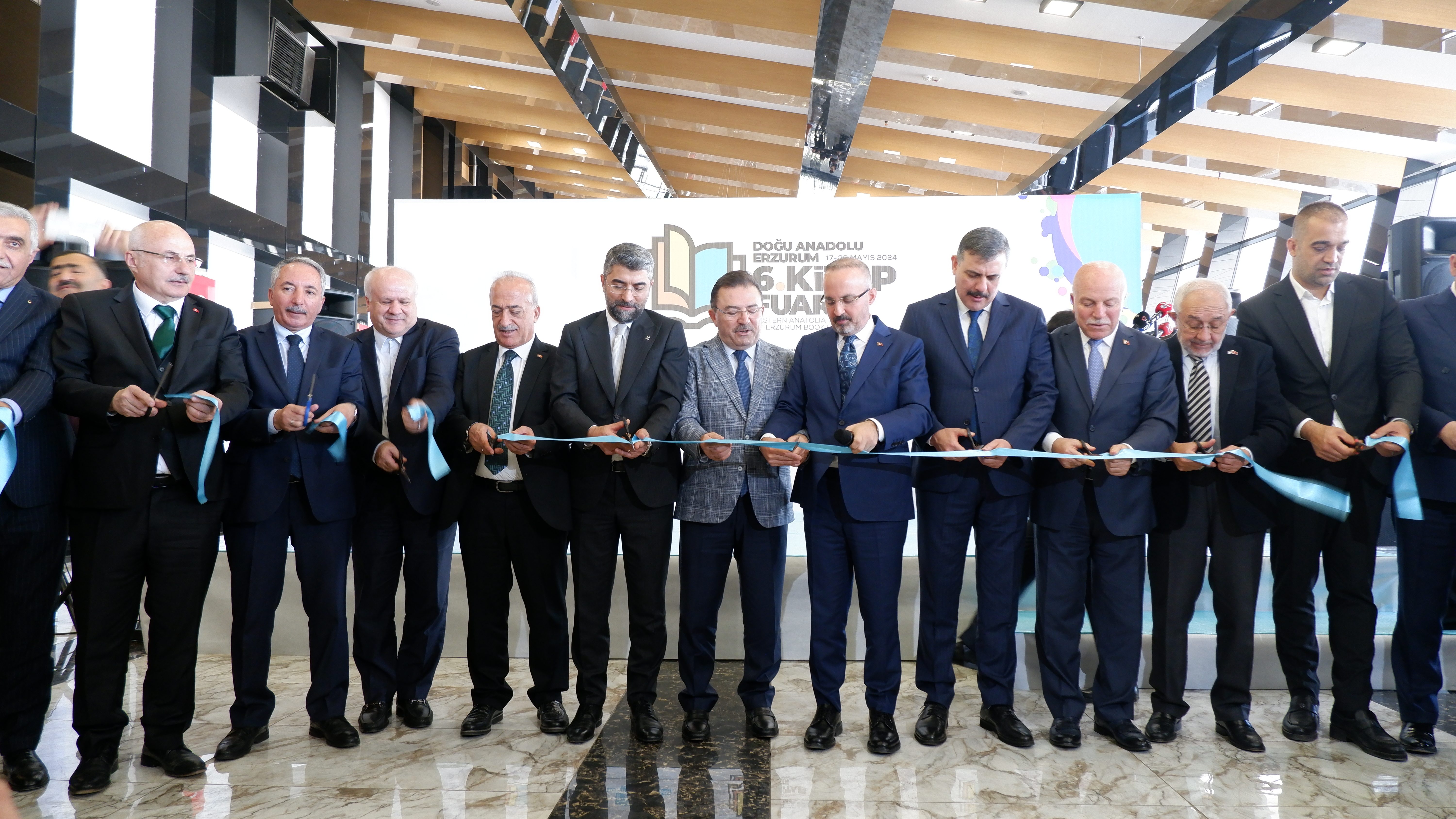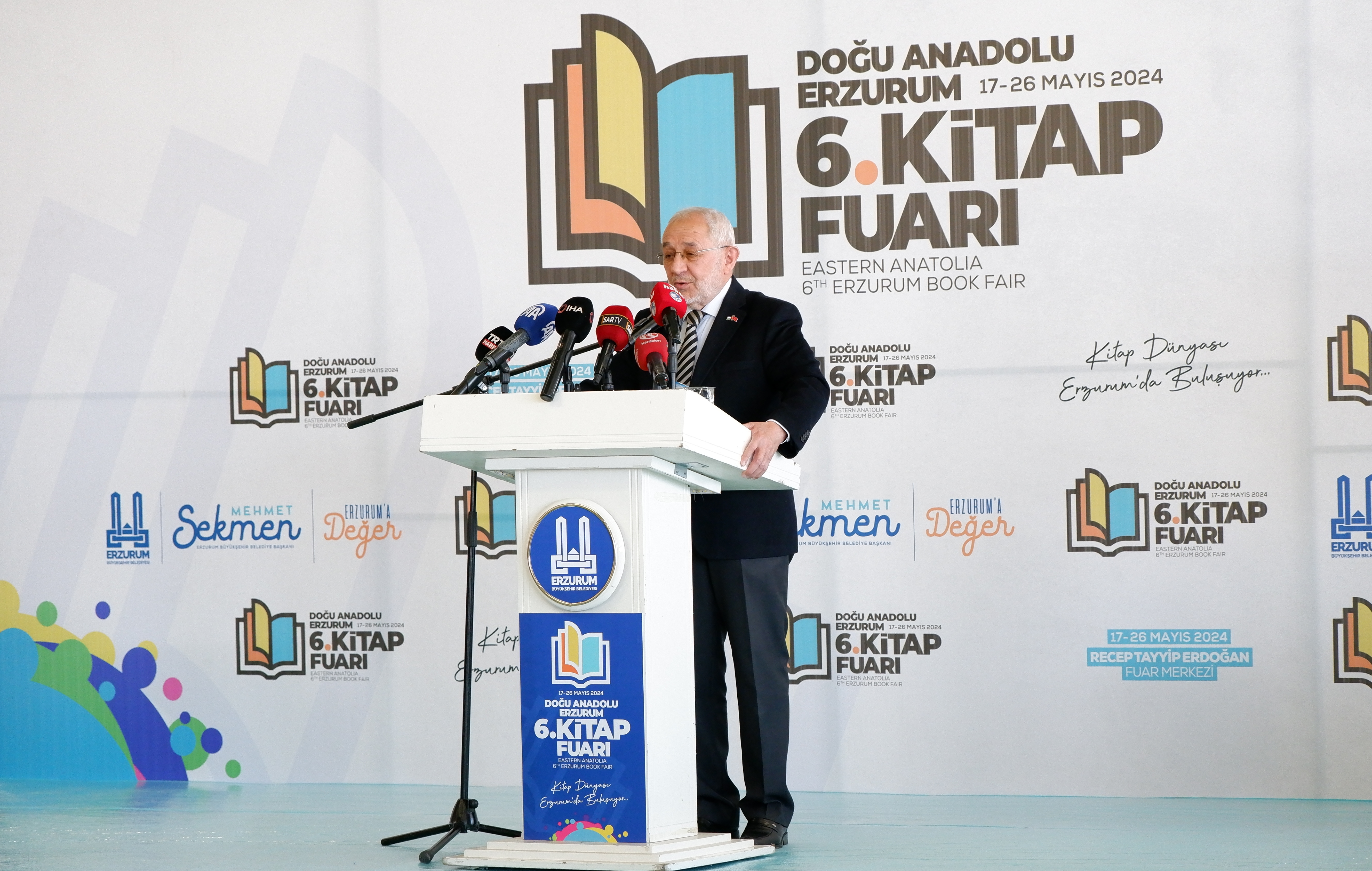 Erzurum Recep Tayyip Erdoğan Fuar Merkezi Fuaye Alanı'nda başlayan ve 26 Mayıs tarihine kadar sürecek olan 6. Doğu Anadolu Erzurum Kitap Fuarı’nın anlamlı açılışında katılımcılarla bir arada olmaktan duyduğu mutluluğu ifade eden Genel Başkan Ekrem Erdem, “muhteşem” olarak tarif ettiği fuar havasını teneffüs ettirdiği için Erzurum Belediye Başkanımız Mehmet Sekmen’e teşekkür etti ve başarısını sürdüren organizasyon için Sekmen’i tebrik etti.