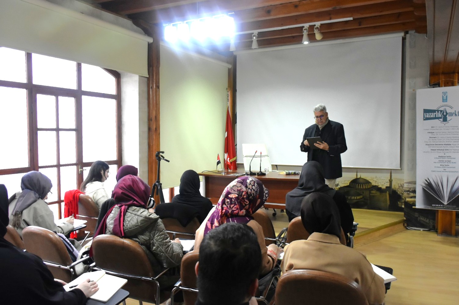 Türkiye Dil ve Edebiyat Derneği (TDED) tarafından düzenlenen "Yazarlık Mektebi"nin 12. dersinde TDED Genel Başkan Vekili, Dil ve Edebiyat Genel Yayın Yönetmeni Üzeyir İlbak “Okur-Yazar, Okur, Okumak, Altmetin ve Satırarası Okumak”; hikâyeci yazar Cemal Şakar “Modern Hikâyede Anlatıcı” üzerine birikimlerini paylaştı.