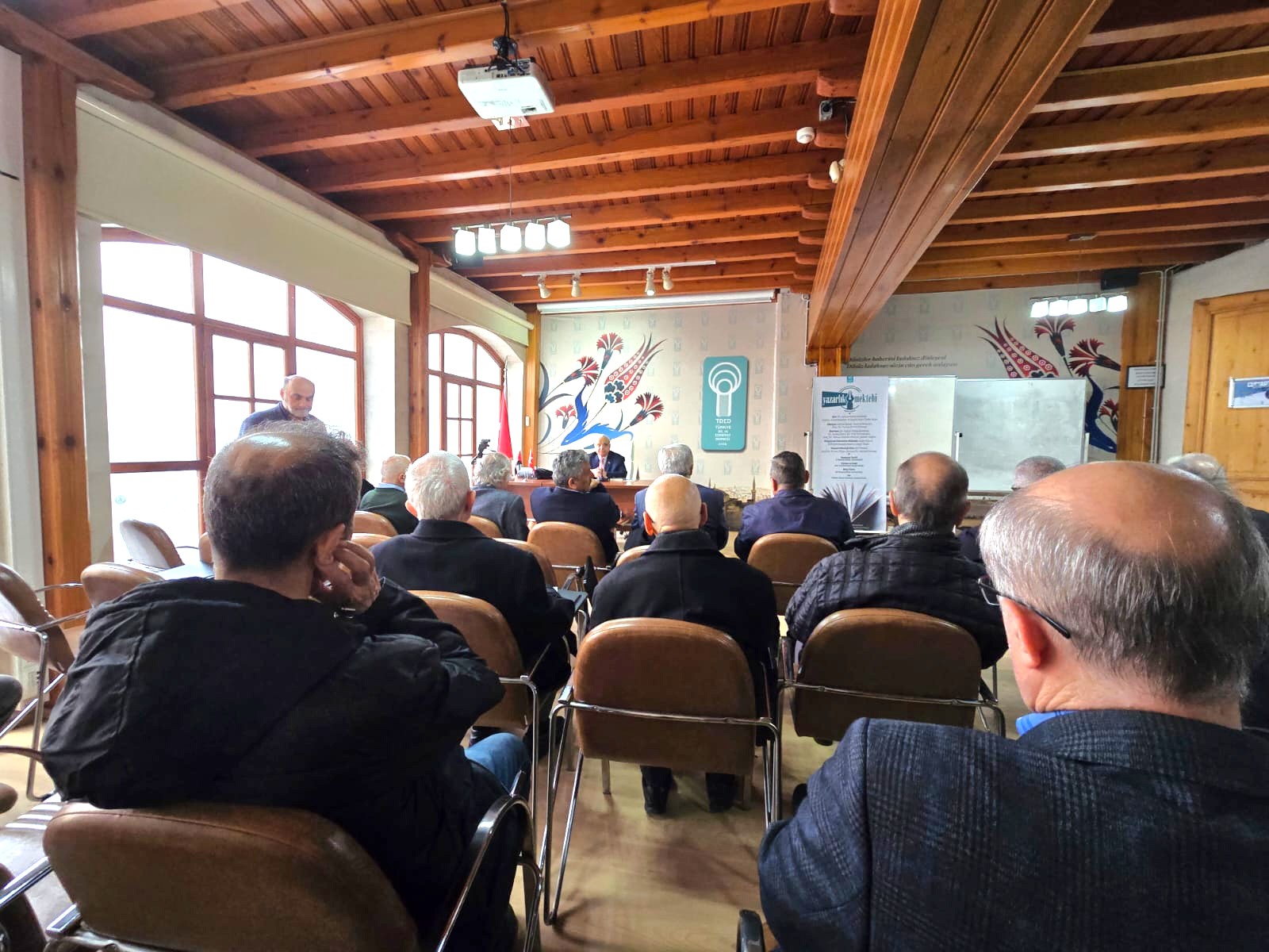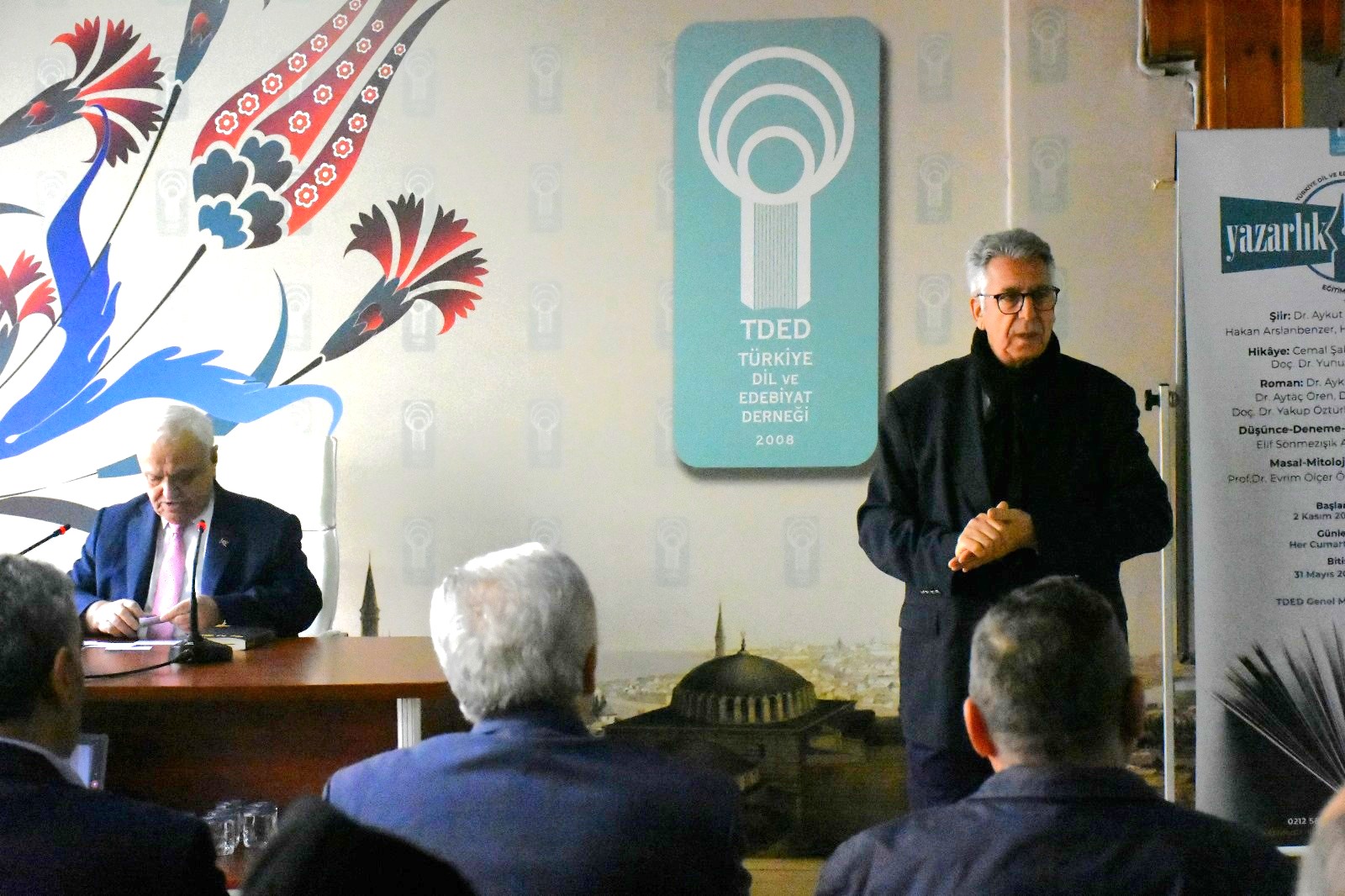 Türkiye Dil ve Edebiyat Derneği’nin (TDED) haftalık söyleşi programı “Cumartesi Buluşmaları”nda Eski Kültür ve Turizm Bakanı Atilla Koç, “Dilimiz Türkçe mi?” başlıklı bir konferans verdi. Söyleşiden sonra katılımcılar ve dernek yöneticileriyle hatıra fotoğrafı çektiren Koç, derneğin geleneksel kuru fasülye-pilav ikramı esnasında katılımcılarla bir süre sohbet etti.