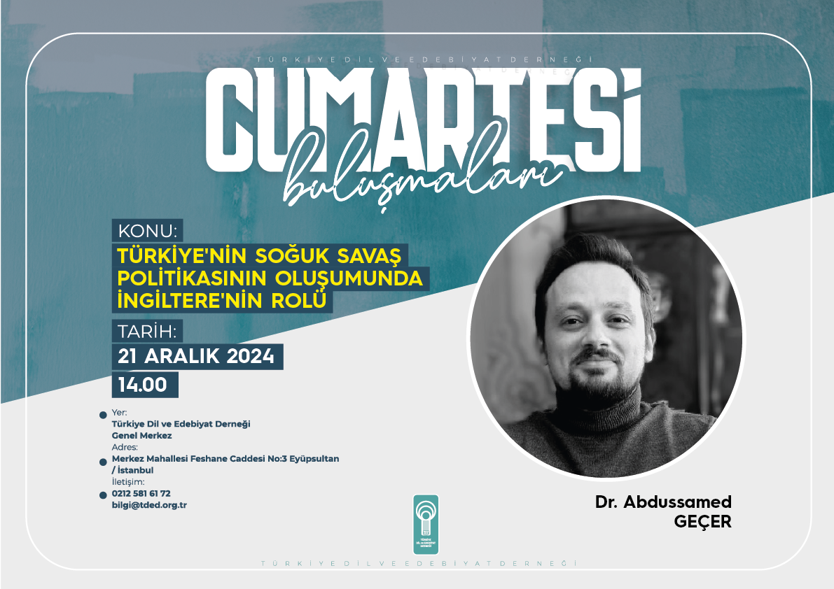 Ayın üçüncü konuşmacısı Dr. Abdussamed Geçer, “Türkiye'nin Soğuk Savaş Politikasının Oluşumunda İngiltere'nin Rolü” başlıklı bir konuşma yapacak.