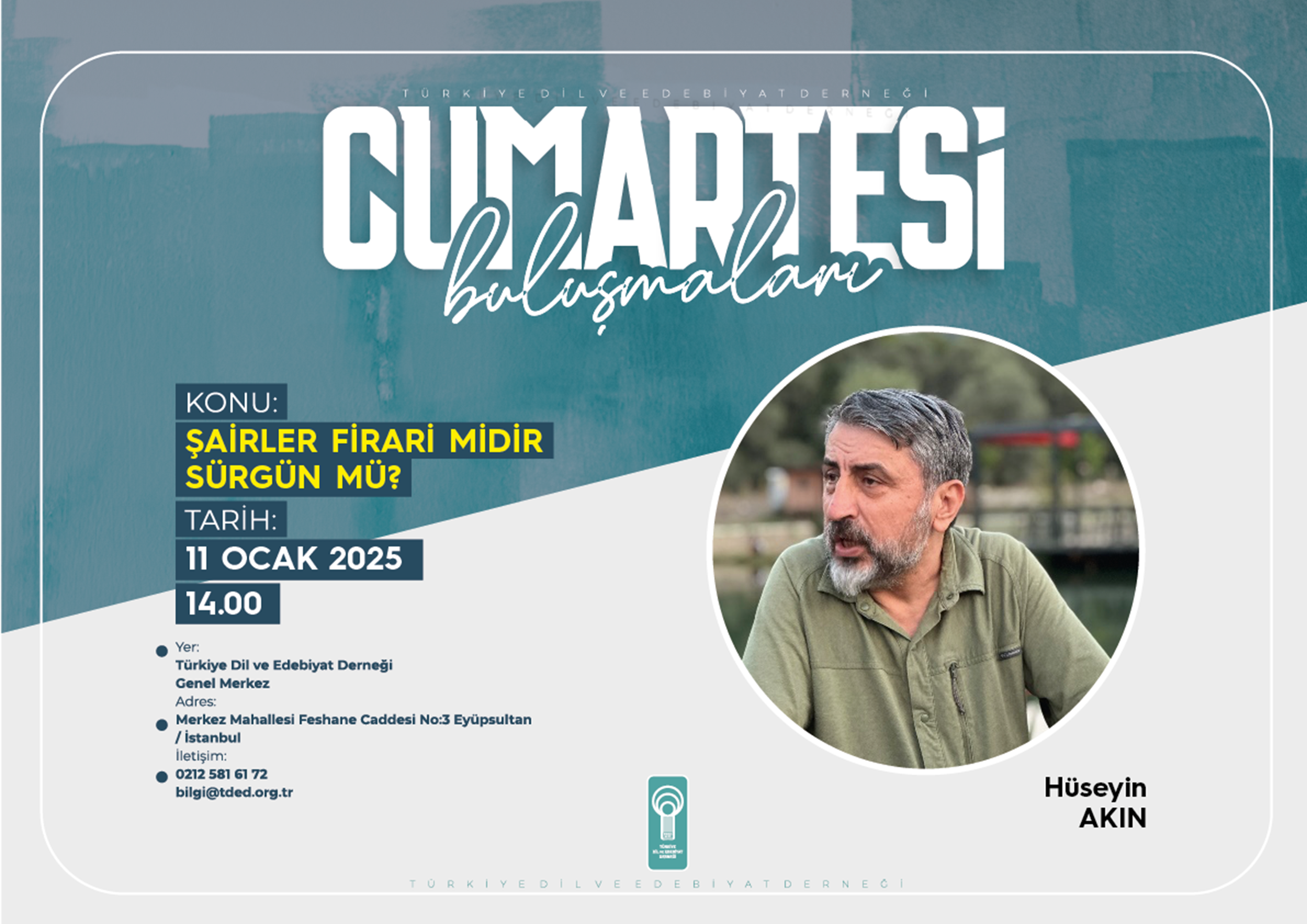 HÜSEYİN AKIN “CUMARTESİ BULUŞMALARI”NDA KONUŞACAK