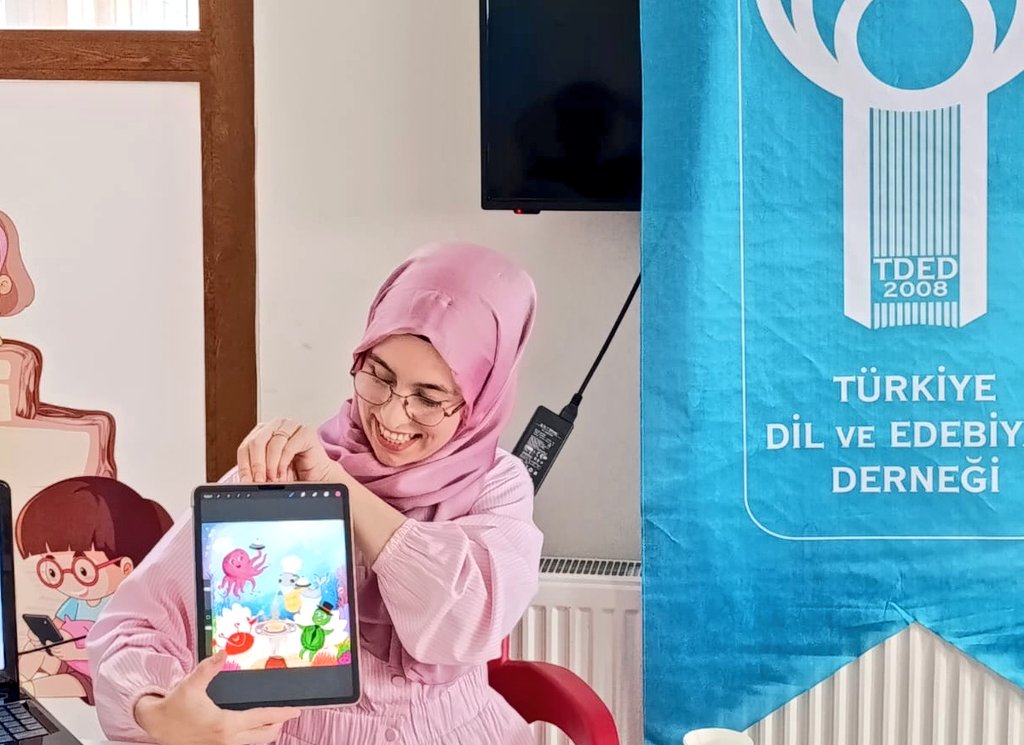 Anasayfa Faaliyetler RABİA KARABULUT: DİJİTAL ÇİZİM RABİA KARABULUT: DİJİTAL ÇİZİM TDED Manisa Kardelen Yaz Mektebi'nde Rabia Karabulut, "Dijital Çizim: Sanatın Yeni Boyutu" başlıklı söyleşide çocuklarla buluştu, dijital çizimle ilgili bütün ayrıntıları paylaştı. Galeri