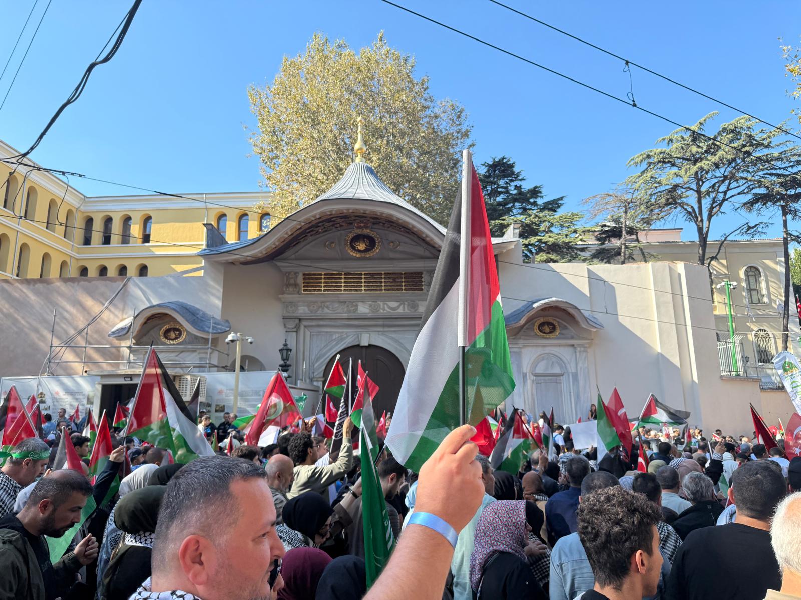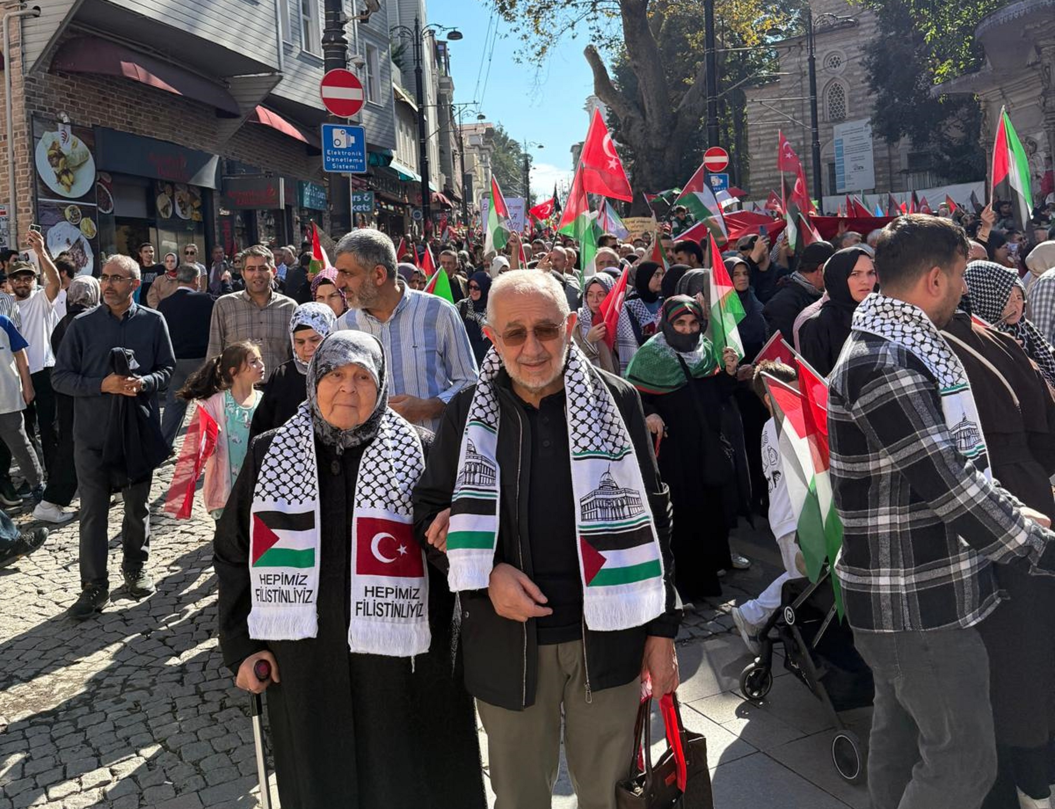 06/10/2025Türkiye Dil ve Edebiyat Derneği Genel Başkanı Ekrem Erdem, Filistin’e Destek Platformu ve İHH İnsani Yardım Vakfının, İsrail’in Gazze’deki abluka ve saldırılarına karşı Sumud ve Özgürlük Filolarına destek olmak ve Gazze’deki insanlık dramına dikkat çekmek için İstanbul’da gerçekleştirdiği yürüyüşe katıldı. Ekrem Erdem eşiyle beraber, öğle namazının ardından Ayasofya Camii’nden Eminönü Meydanı’na yürüdü.