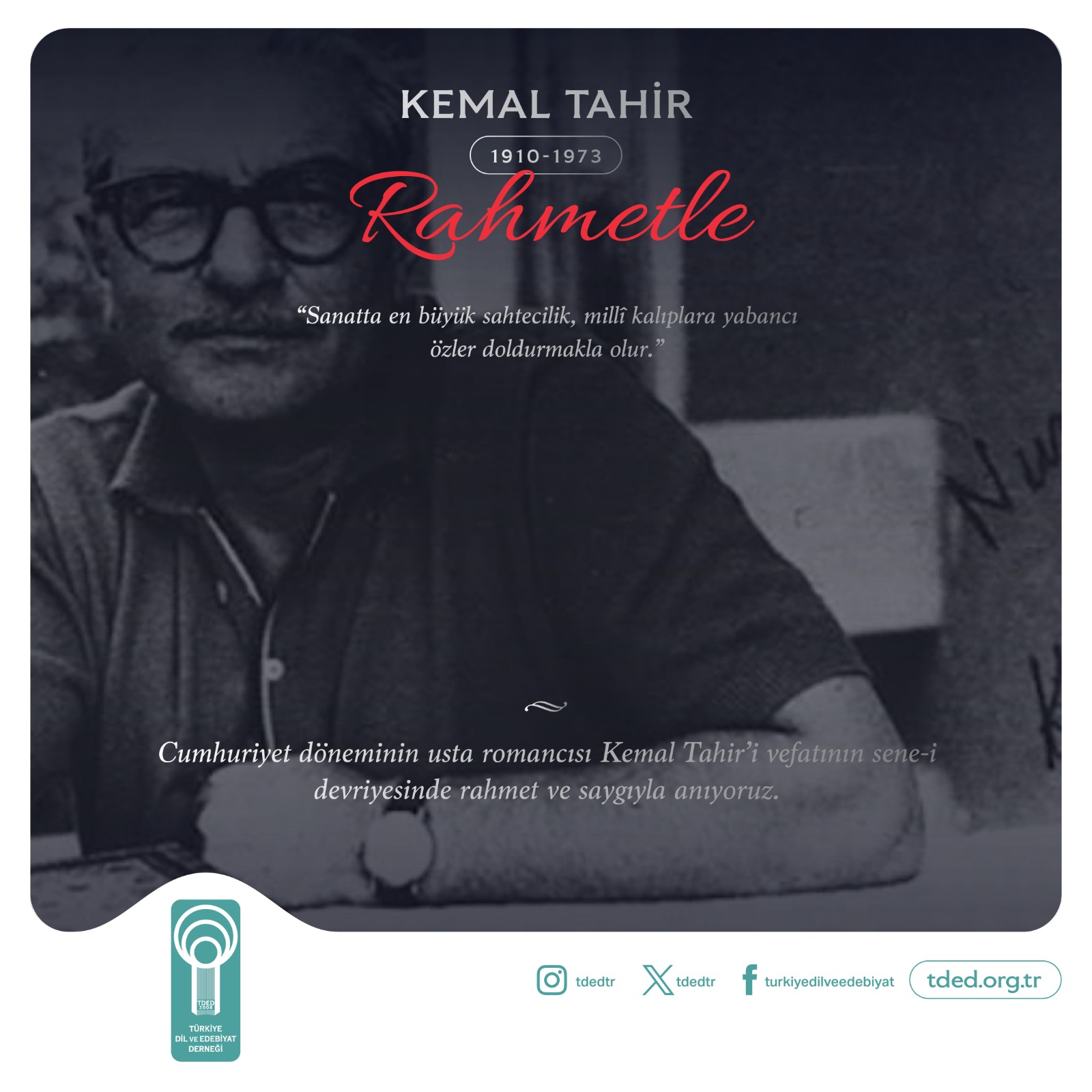 Cumhuriyet döneminin usta romancısı Kemal Tahir’i vefatının sene-i devriyesinde rahmet ve saygıyla anıyoruz.