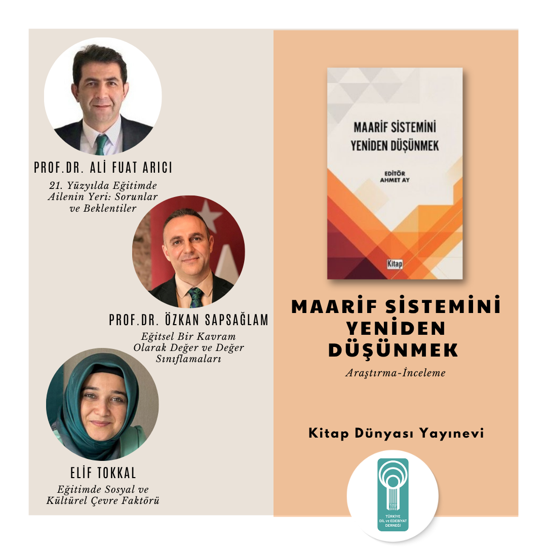 03/07/2025Türkiye Dil ve Edebiyat Derneği (TDED) Yüksek İstişare Kurulu Başkanı Prof.Dr. Ali Fuat Arıcı ve Yüksek İstişare Kurulu Sekreteri Doç.Dr. Özkan Sapsağlam ile Yönetim Kurulu Üyesi ve Kardelen Çocuk Genel Yayın Yönetmeni Elif Tokkal’ın yazıları, editörlüğünü Ahmet Ay’ın yaptığı “Maarif Sistemini Yeniden Düşünmek” isimli felsefi inceleme kitabında bir araya geldi. Kitap, Kitap Dünyası Yayınevi tarafından yayımlandı.