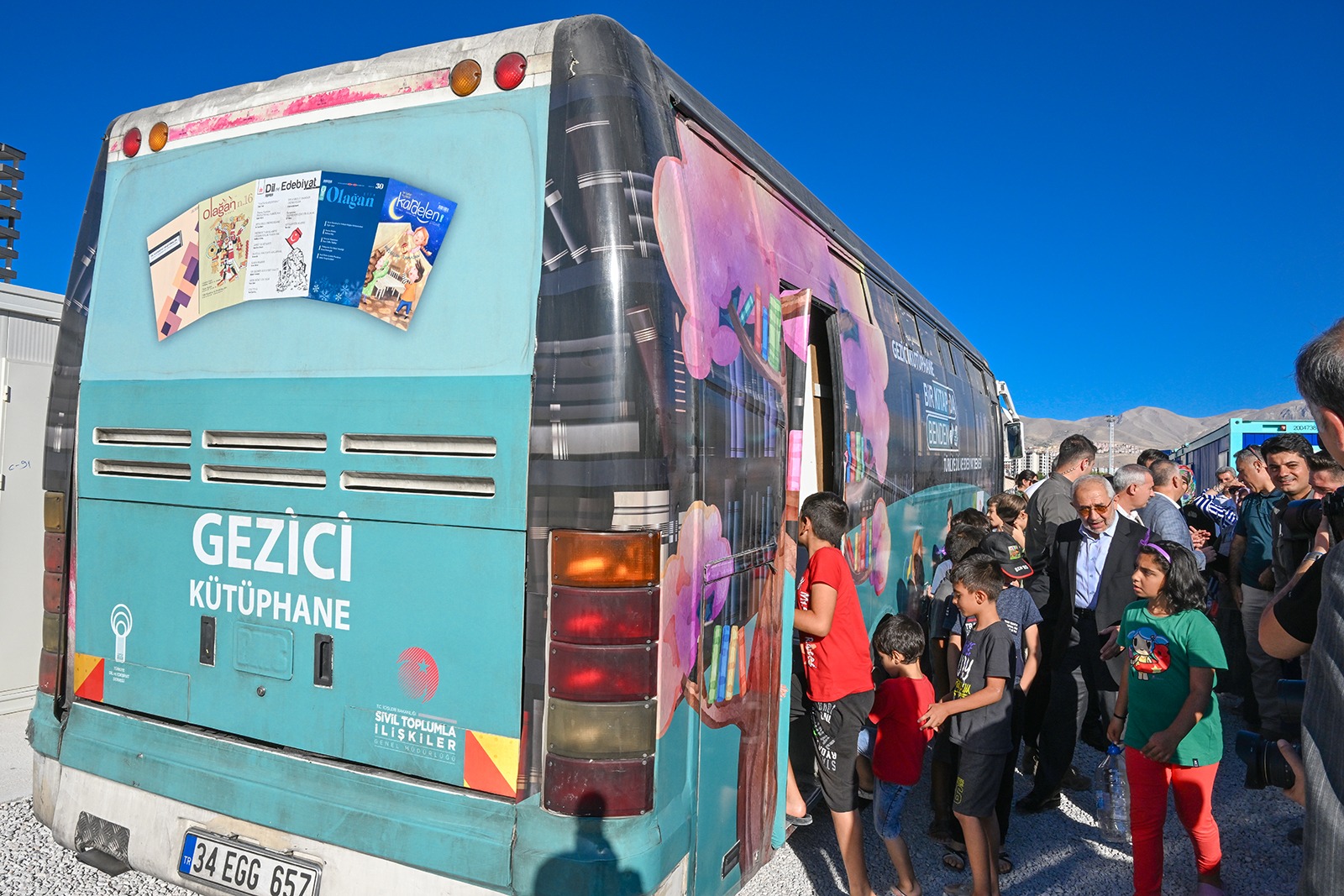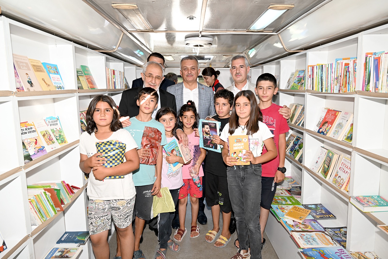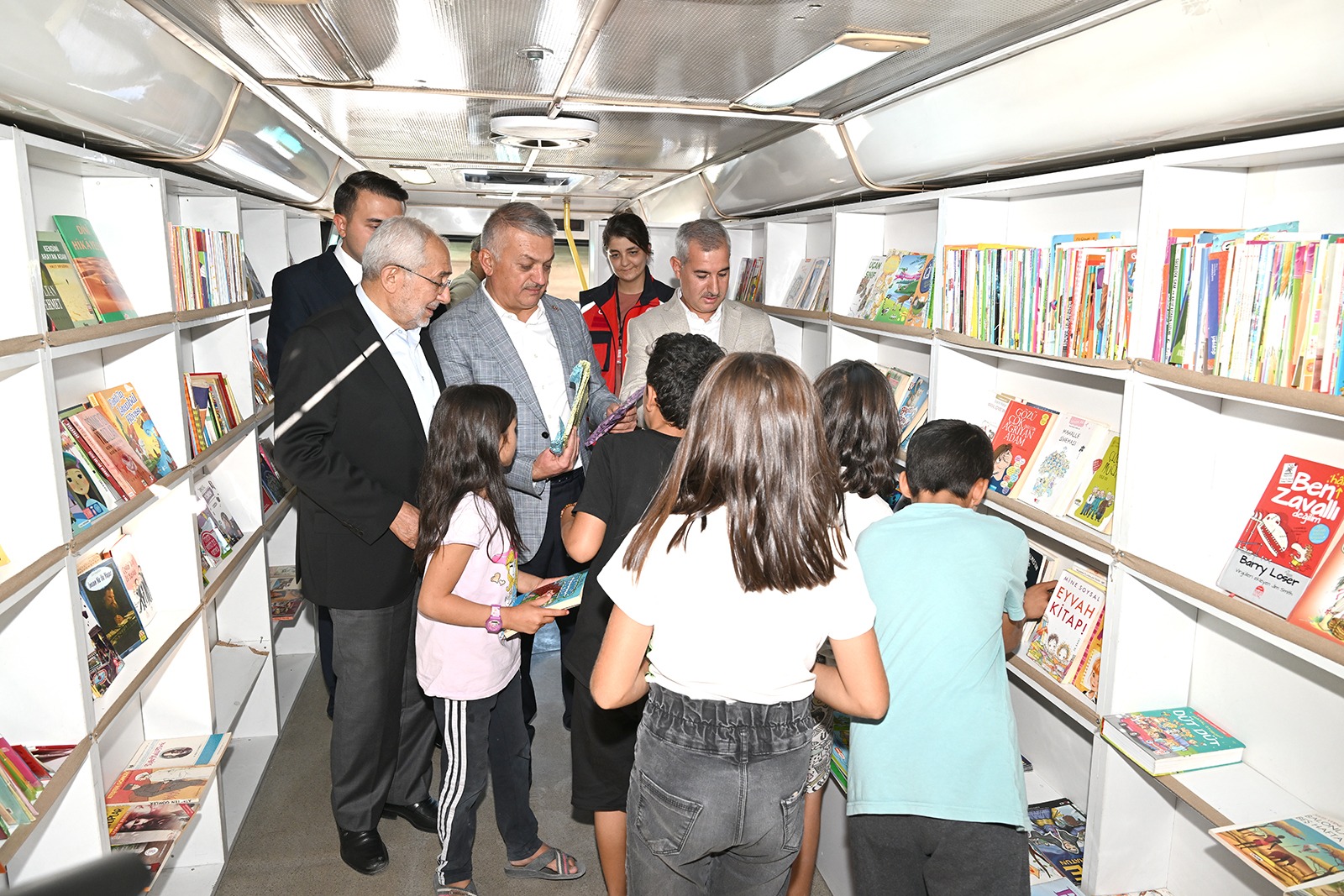 Törenin ardından “Bir Kitap da Benden Kütüphanesi” gezildi ve gezici kütüphane aracılığıyla çocuklara ve gençlere kitap dağıtımı yapıldı.