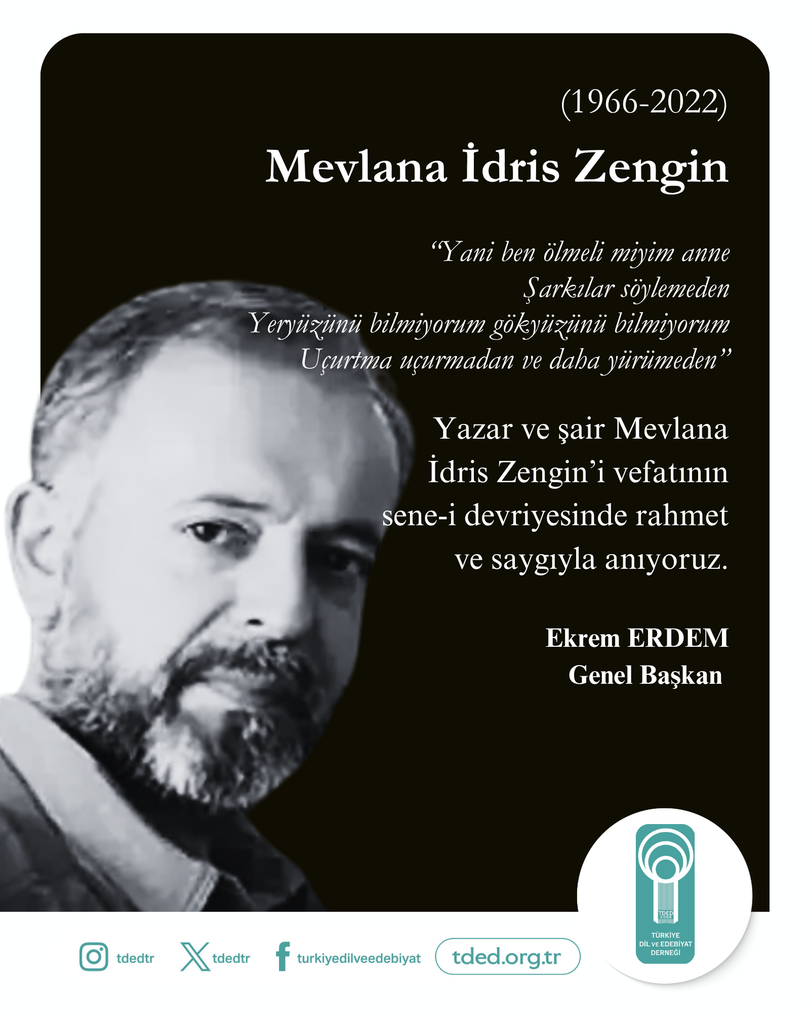 Yazar ve şair Mevlana İdris Zengin’i vefatının sene-i devriyesinde rahmet ve saygıyla anıyoruz.