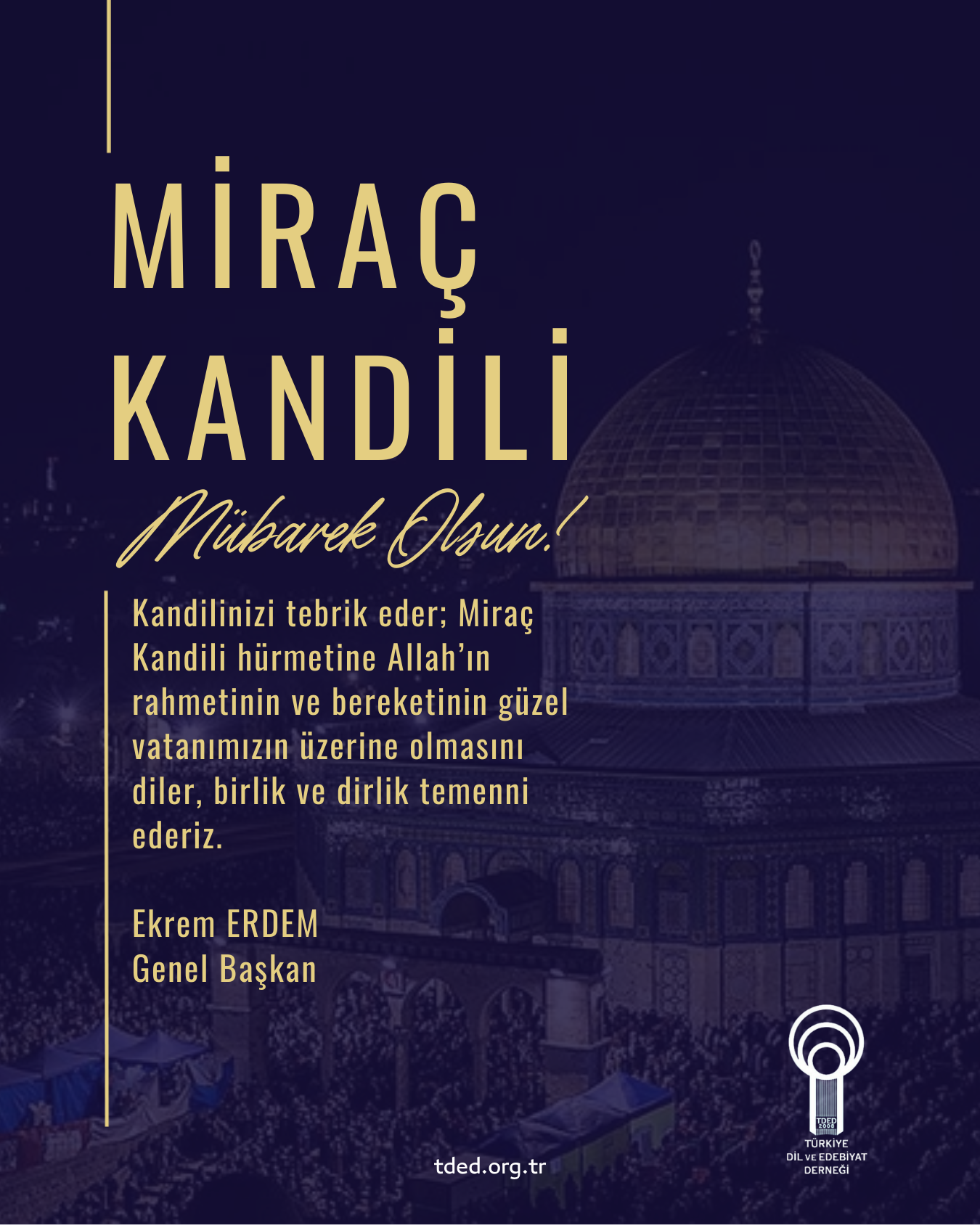 Kandilinizi tebrik eder; Miraç Kandili hürmetine Allah’ın rahmetinin ve bereketinin güzel vatanımızın üzerine olmasını diler, birlik ve dirlik temenni ederiz.