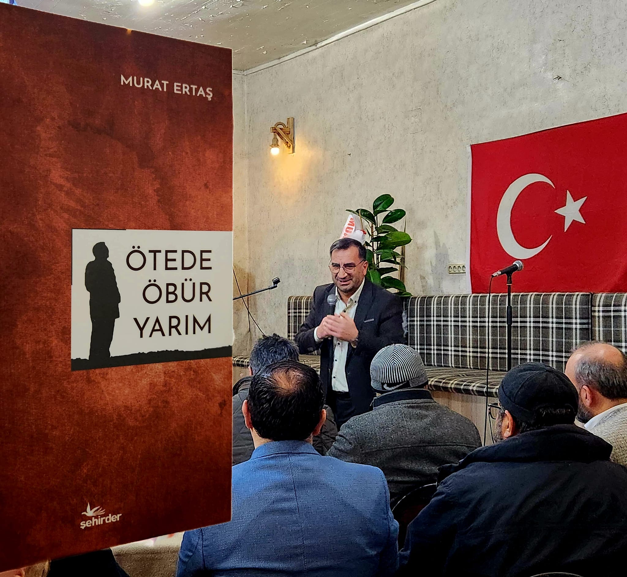 Erzurum’da ŞEHİRDER tarafından yapılan şiir kitabının tanıtım programında konuşan Ertaş, “Kırk yaşımda çıkardığım ikinci şiir kitabıma ‘Kırk Yama’ demiştim. Annemin kırk yamadan yaptığı seccade gibi, kırk yamalı paspas gibi... Elli yaş yarım asır demek... 10 yıl sonra bir araya getirdiğim şiirlerime ‘Ötede Öbür Yarım’ dedim. ‘Yarım kalmak mı hayat, tamamlanmak mı ölüm?’ bilemiyorum; ancak insan dostlarıyla tamamlanıyor, belki tamir oluyor.” dedi ve şiir yolculuğunda yanında olanlara ve programa katılanlara tek tek teşekkür etti.