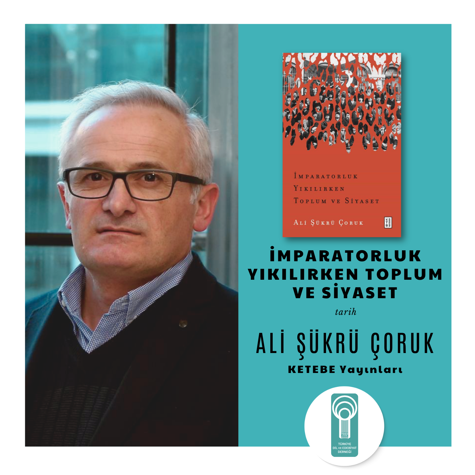 19/11/2025Türkiye Dil ve Edebiyat Derneği (TDED) Yüksek İstişare Kurulu Üyesi, İstanbul Üniversitesi Edebiyat Fakültesi Türk Dili ve Edebiyatı Bölüm Başkanı Prof. Dr. Ali Şükrü Çoruk'un “İmparatorluk Yıkılırken Toplum ve Siyaset” isimli kitabı KETEBE Yayınları arasından çıktı.