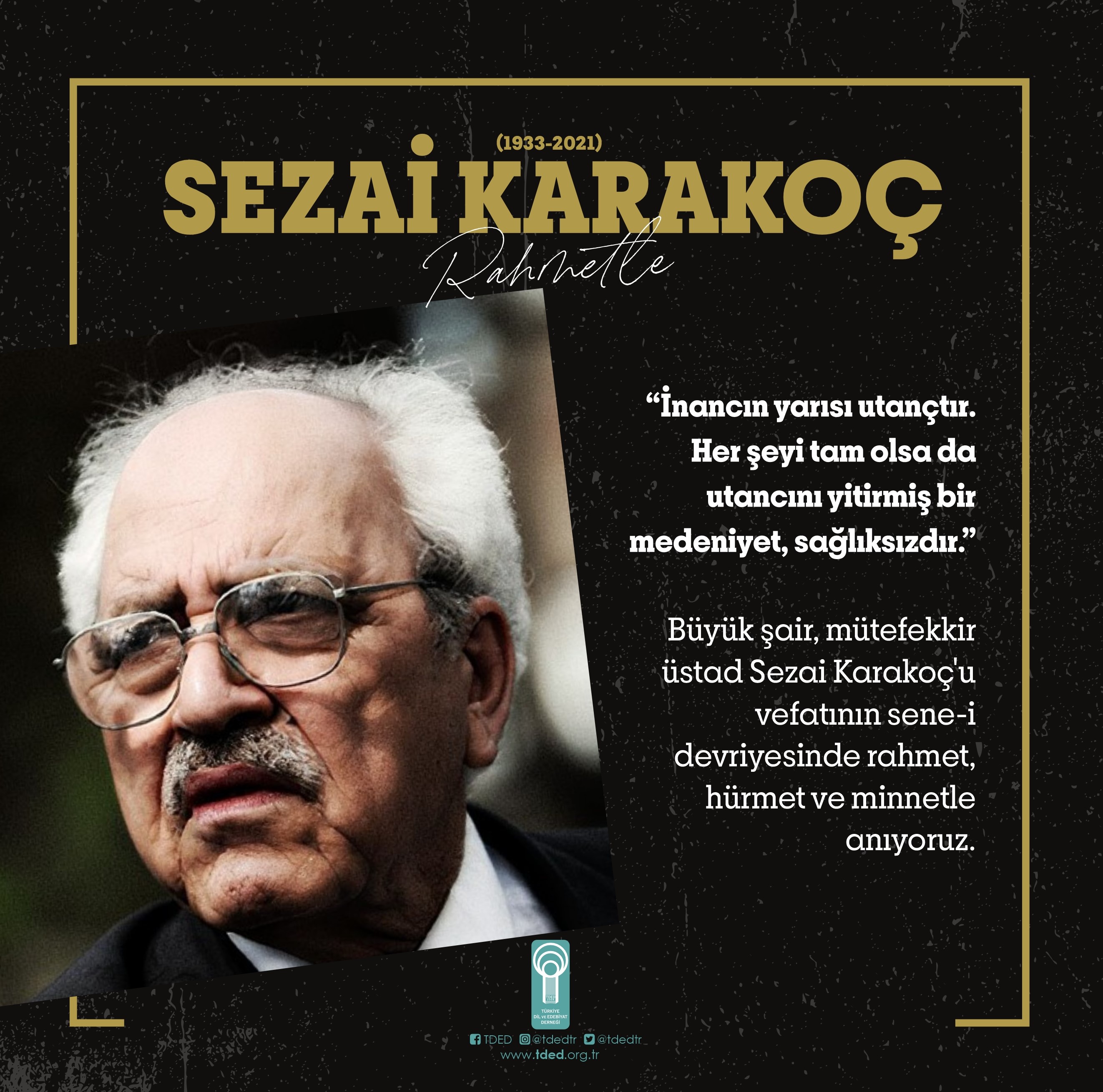 Büyük şair, mütefekkir üstad Sezai Karakoç'u vefatının sene-i devriyesinde rahmet, hürmet ve minnetle anıyoruz.