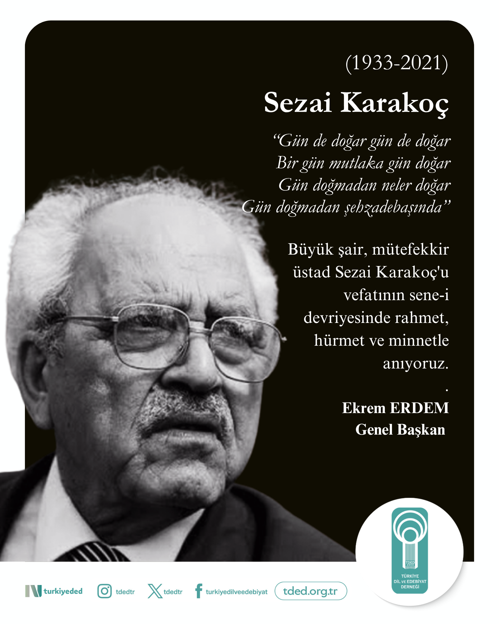 Büyük şair, mütefekkir, üstad Sezai Karakoç'u vefatının sene-i devriyesinde rahmet, hürmet ve minnetle anıyoruz.