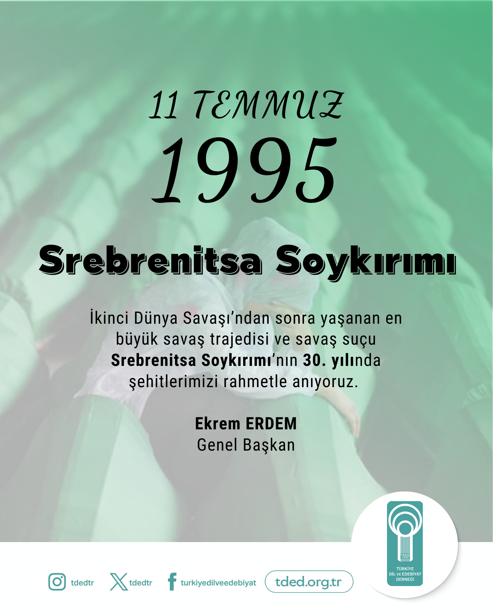 Anasayfa SREBRENİTSA SOYKIRIMI’NIN 30. YILI SREBRENİTSA SOYKIRIMI’NIN 30. YILI 11/07/2025 İkinci Dünya Savaşı’ndan sonra yaşanan en büyük savaş trajedisi ve savaş suçu Srebrenitsa Soykırımı’nın 30. yılında şehitlerimizi rahmetle anıyoruz. Galeri