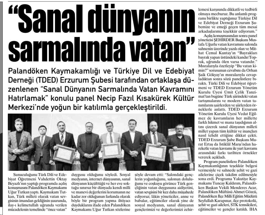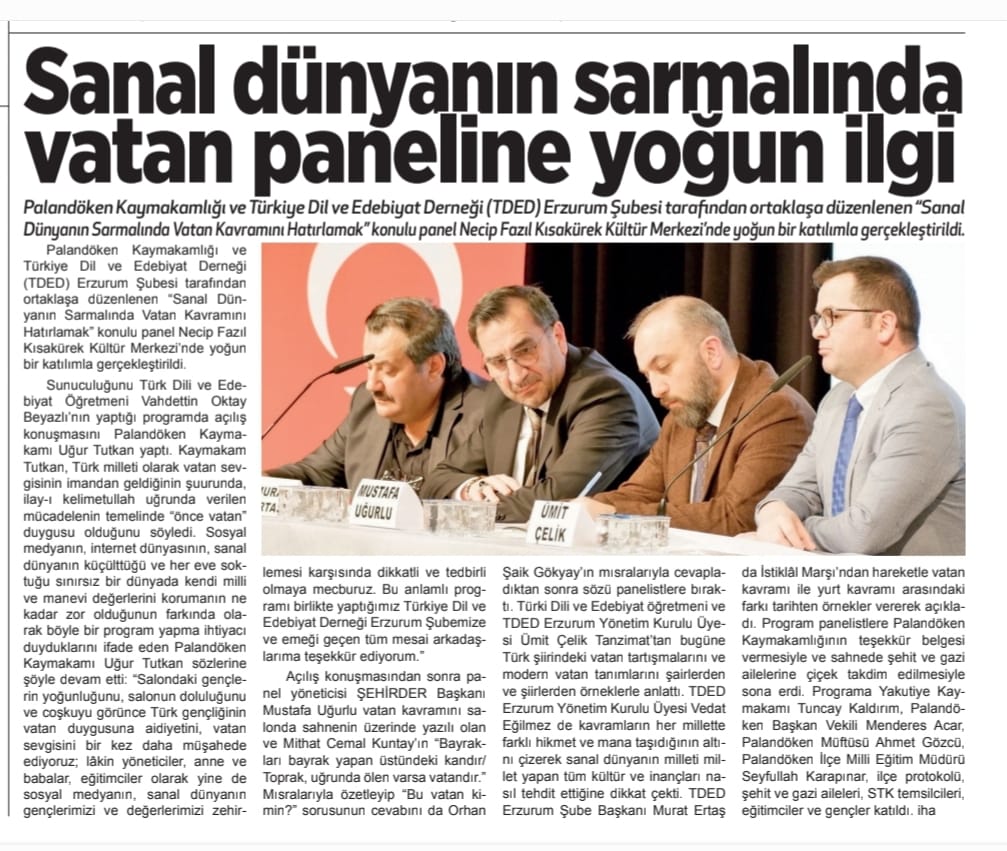TDED ERZURUM: VATAN ÜZERİNE PANEL