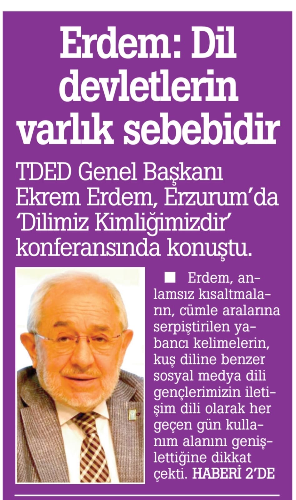 Kaynak: İHA / https://www.iha.com.tr/erzurum-haberleri/tded-genel-baskani-ekrem-erdem-dilimiz-kimligimizdir-57605572 / https://www.gazetepusula.net/erzurum-da-dilimiz-kimligimizdir-konferansi/344839/ / https://erzurumgunebakis.com/haber/tded-genel-baskani-ekrem-erdem-dilimiz-kimligimizdir-56870.html / https://beyazgazete.com/haber/2024/2/13/tded-genel-baskani-ekrem-erdem-dilimiz-kimligimizdir-7000918.html /