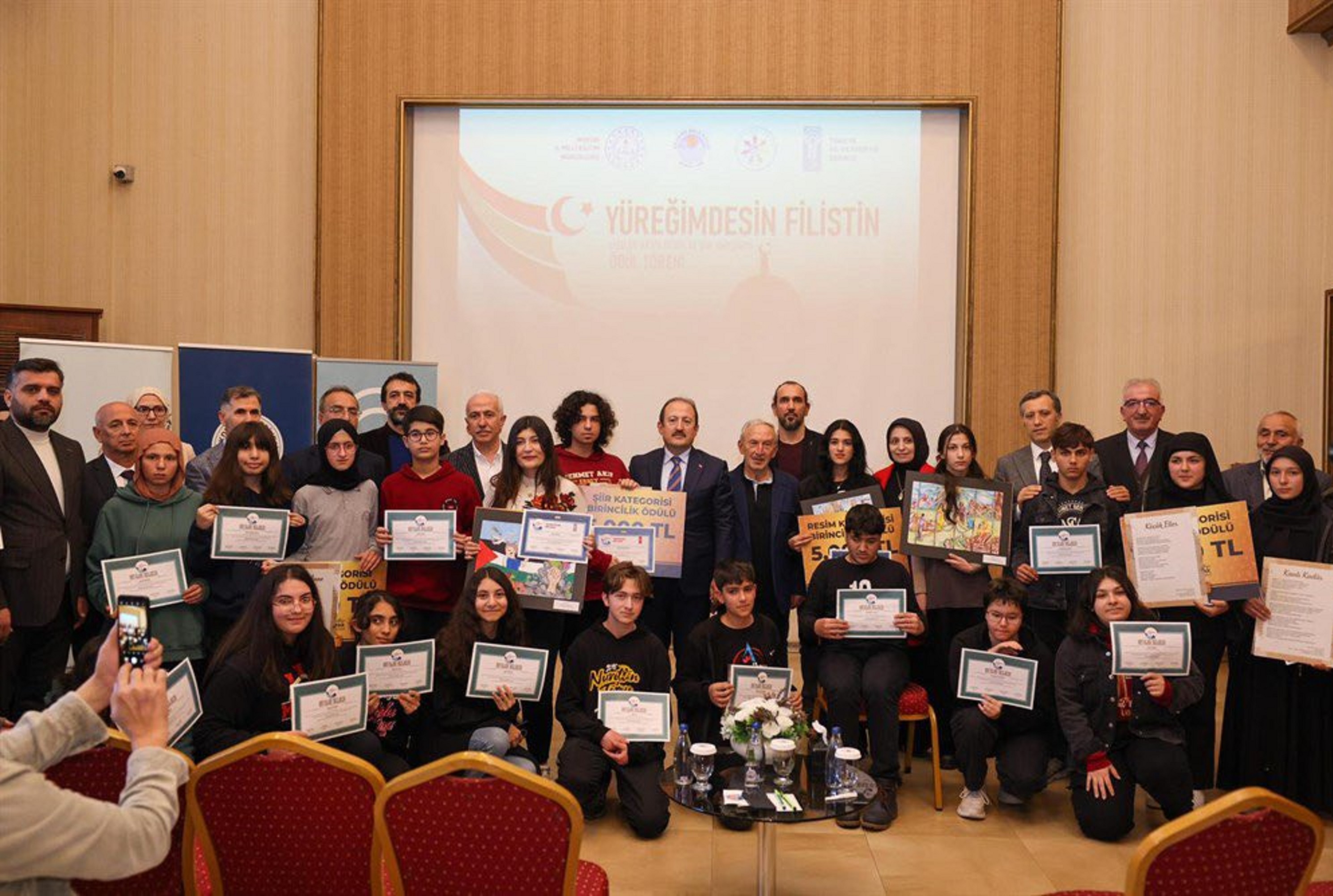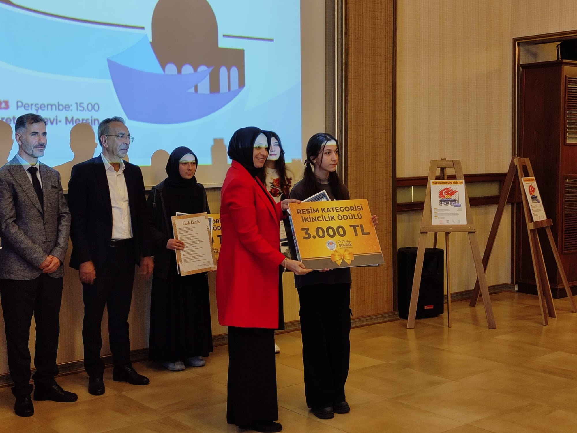 Vali Ali Hamza Pehlivan ve protokol üyeleri “Yüreğimdesin Filistin” konulu liselerarası resim ve şiir yarışmasının dereceye giren öğrencilere ödüllerini takdim etti, başarılarının devamını diledi.