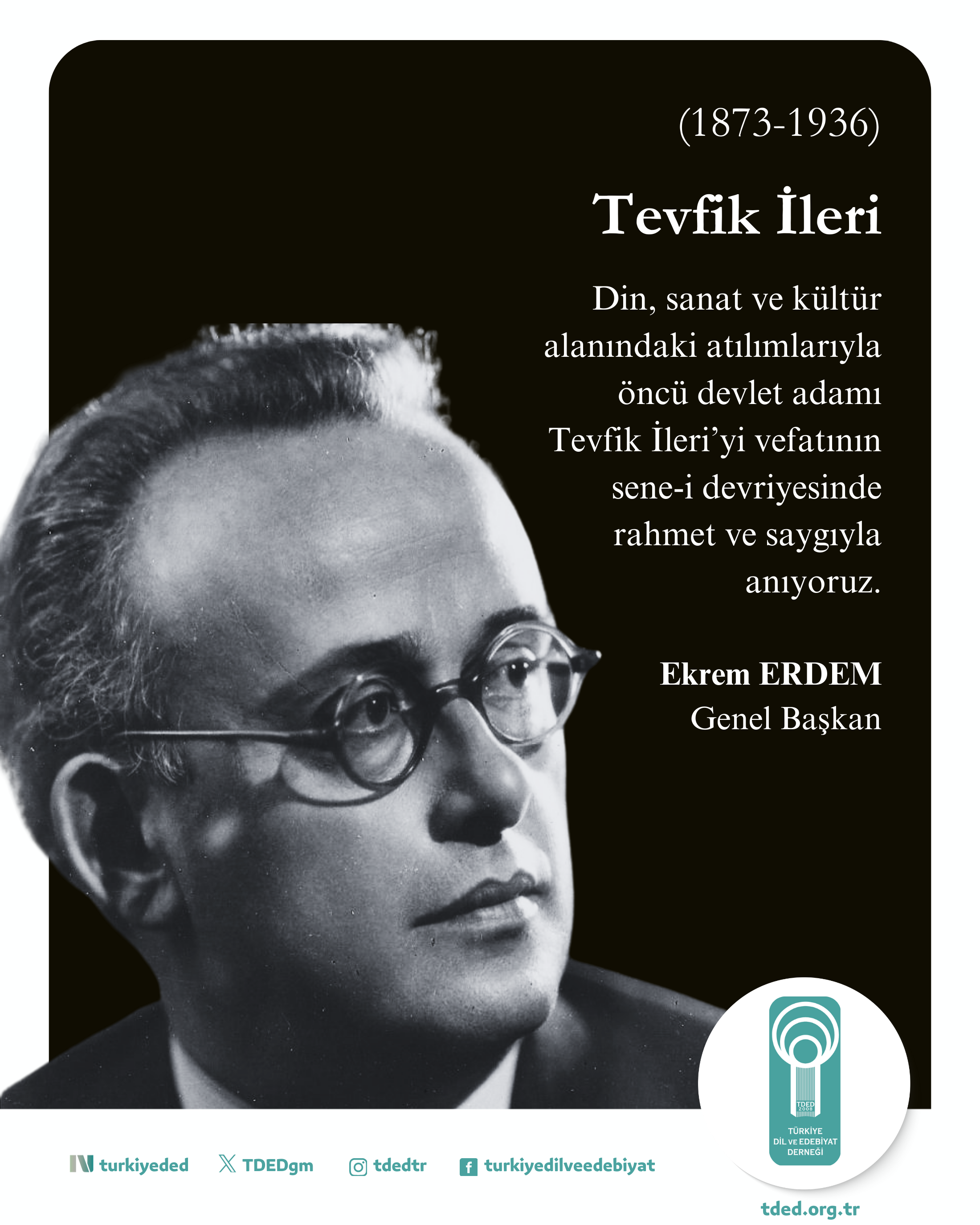 31/12/2025Din, sanat ve kültür alanındaki atılımlarıyla öncü devlet adamı Tevfik İleri’yi vefatının sene-i devriyesinde rahmet ve saygıyla anıyoruz.